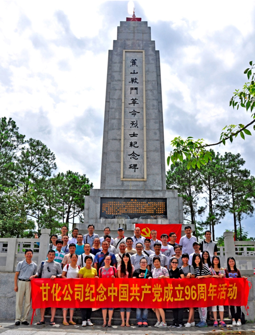 為紀念中國共產(chǎn)黨建黨96周年,并進行愛國愛黨愛崗教育,2017年7月1日上午,甘化公司黨委組織本部和子公司全體黨員到新興蕉山革命烈士陵園,開展了“不忘初心,牢記宗旨”主題黨日活動,重溫入黨誓詞,以莊嚴神圣的方式慶祝黨的生日。