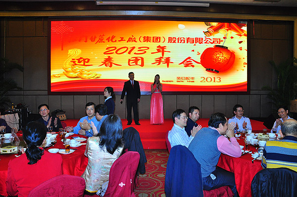 緊接著,在熱烈的掌聲祝福中,甘化公司董事長兼總裁麥慶華先生以及各公司高管進行頒獎,對股份公司及德力光電的優秀員工、生物中心的先進管理者和先進工作者進行表彰。然后,公司領導集體上臺敬酒。隨著禮炮響亮地鳴放,萬眾期待的團拜晚宴正式開始了!