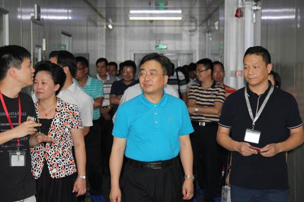 2015年10月26日下午,“臺山四大班子”到訪德力光電進行調研工作。“臺山四大班子”在德力光電總經理王非陪同下,先后參觀了外延片、芯片生產車間及展廳,王非總經理進行了詳細的講解。